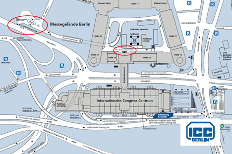 *This map shows the best way for exhibitors to access the freight elevator leading to Hall 2 (exhibition hall)