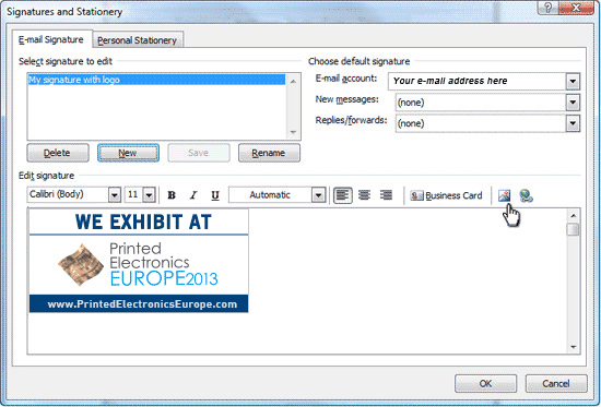 How to save and load the conference logo onto your signature using Microsoft Outlook