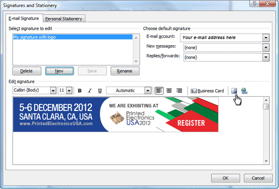 How to save and load the conference logo onto your signature using Outlook